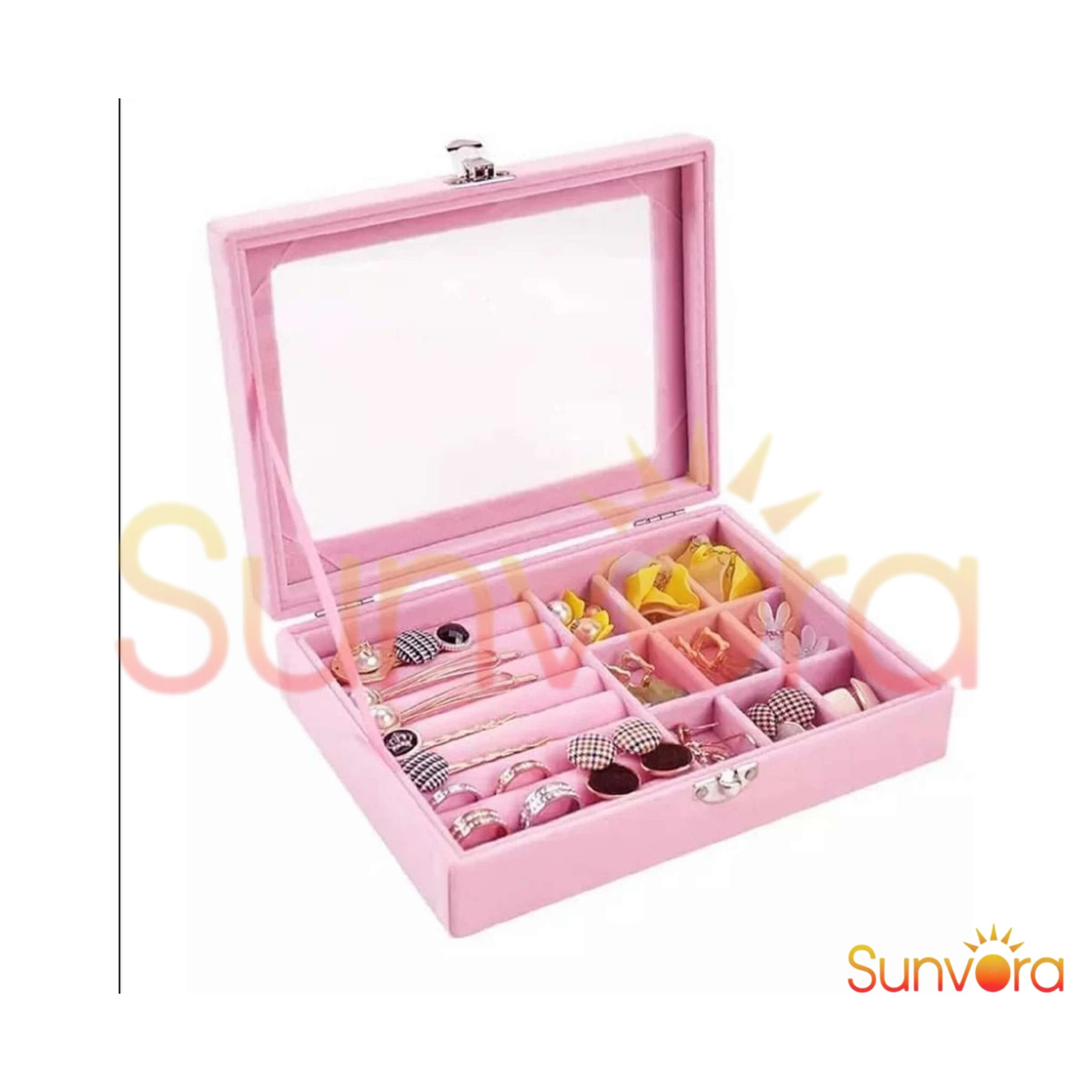 The Sunvora 9 Grid Jewellery Storage Box solves this by offering dedicated compartments that keep each item separated and secure. The soft velvet interior protects delicate pieces from scratches, while the lockable closure ensures safe storage. The display window allows you to quickly view your collection without opening the box.