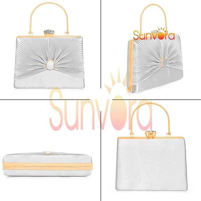 Sunvora Bridal Fabric Clutch for Women Elegant Party Handbag with Chain Strap Silver by RMR JAIHIND EP