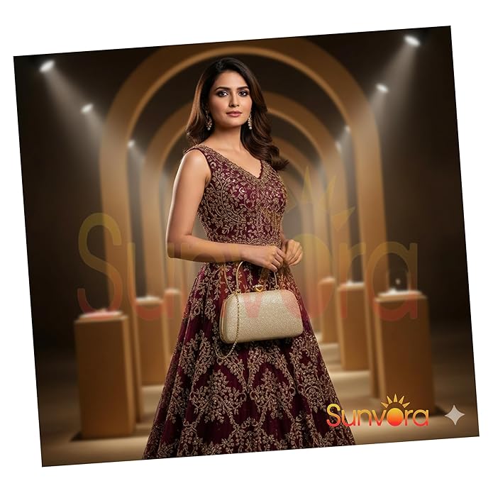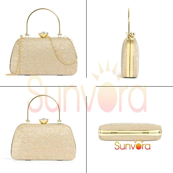 ✨ELEGANT DESIGN: Sunvora bridal clutch purse crafted from premium PU leather in stunning gold colour, perfect for weddings, parties, and evening events