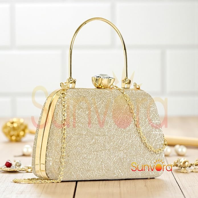 Sunvora Bridal PU Leather Clutch Purse for Women Gold purse Elegant Gold Chain Party Handbag RMR JAIHIND EP